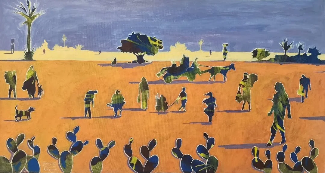 Majed Shala is a 84-year-old artist who has been exhibited throughout the world. He is a founding member of Shababeek (Windows) from Gaza for Contemporary Art group. He is also member of the Fine Artists Association in Palestine and taught art for over over a decade. He was born in 1960 in Gaza.