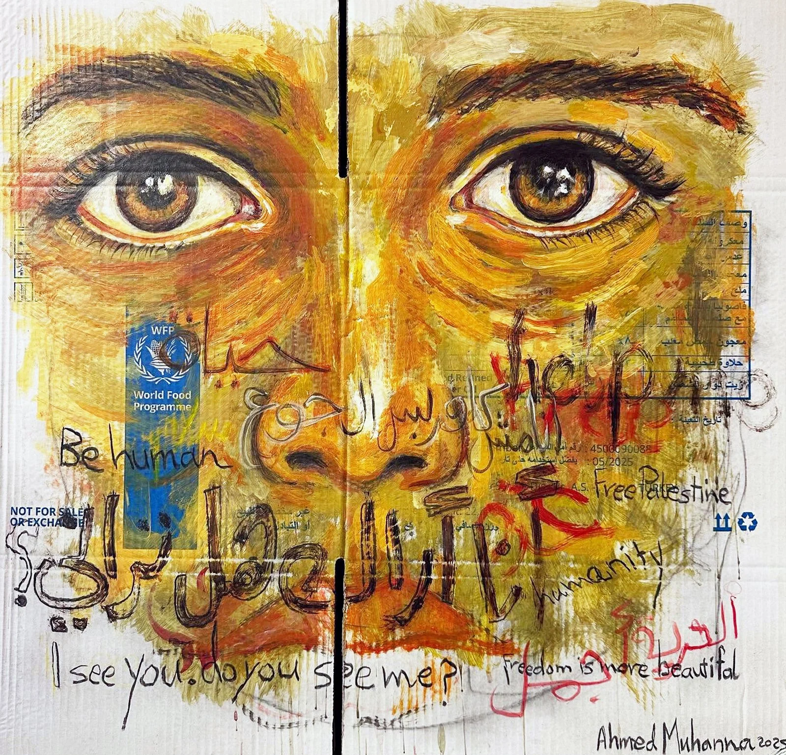 In Fall 2025, there was a traveling art exhibition of of Ahmed's work across nine European cities, put on by the United Nations World Food Program (WFP). It featured dozens of his pieces painted by him on food aid boxes.