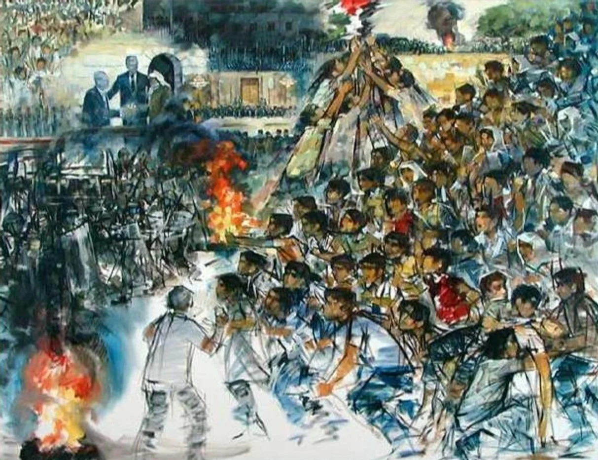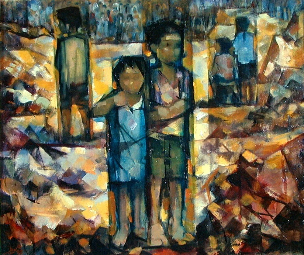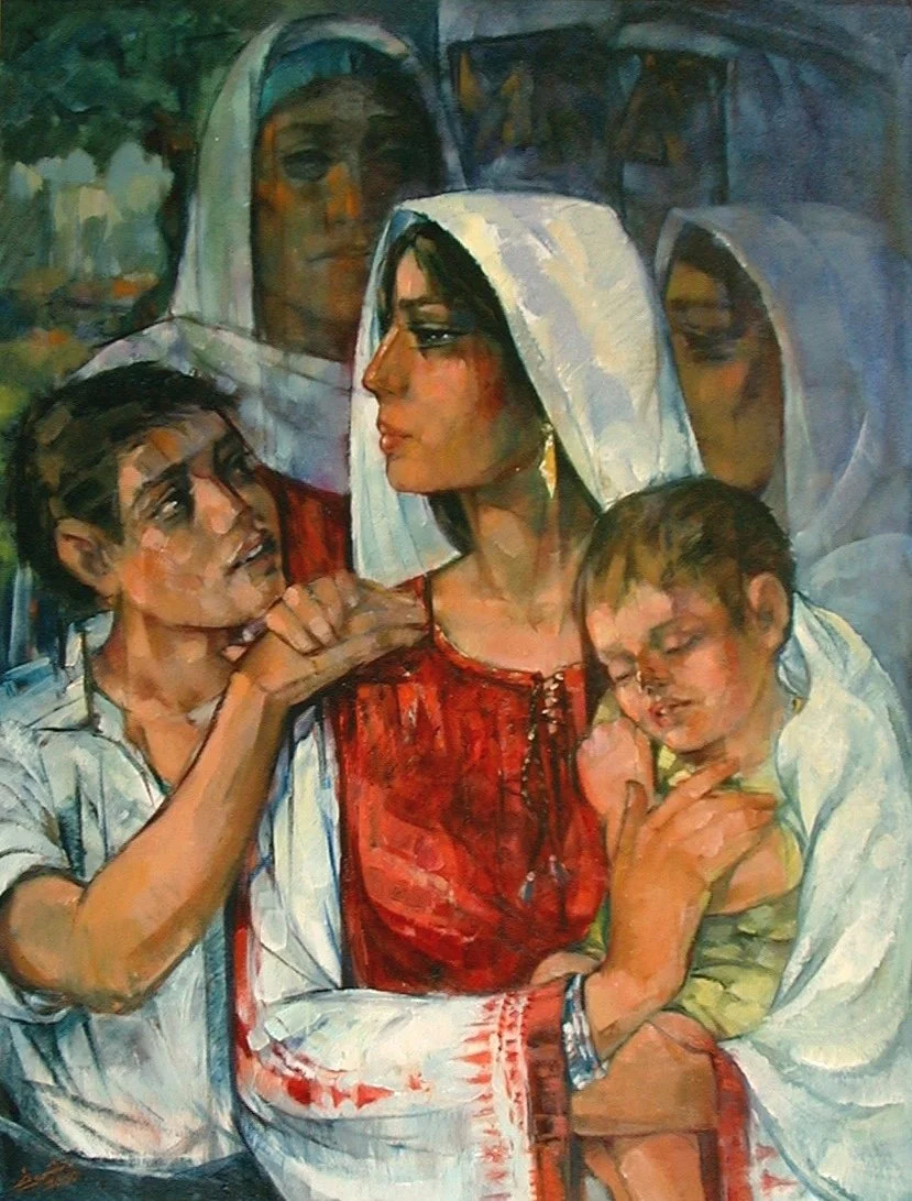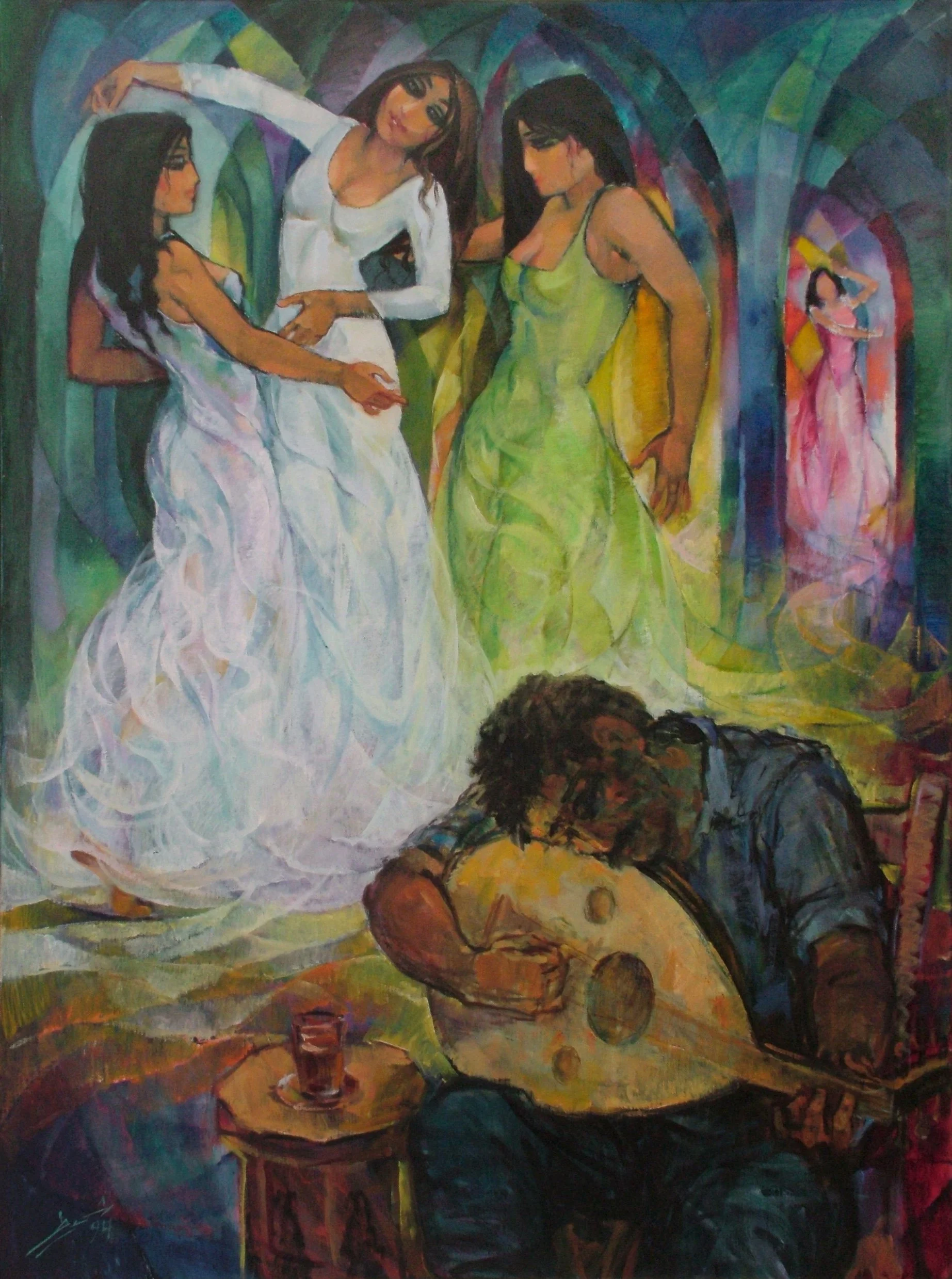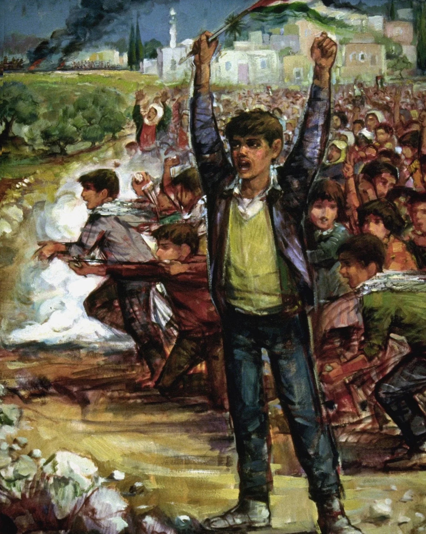 Painting from Kuwait, his work captures the spirit of the rebellion across many paintings. He continued to return to this intifada as a subject matter in the years to come.