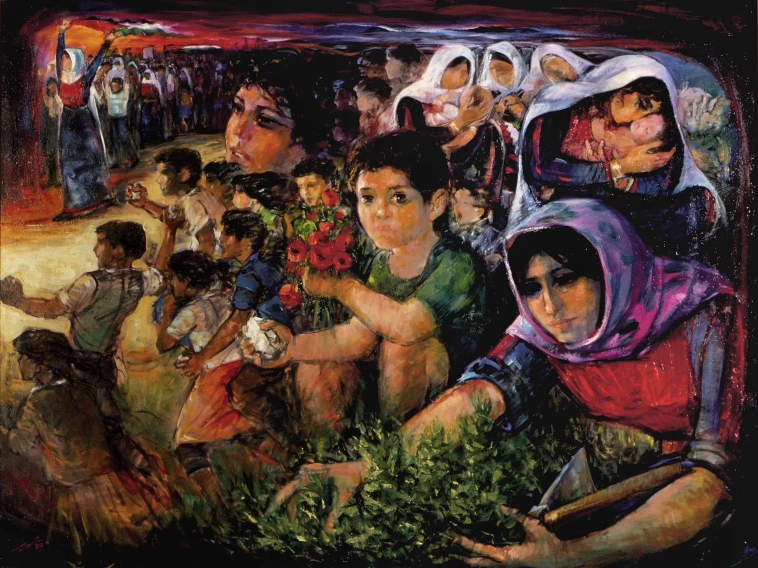 Over his career, Shammout’s paintings reflected Palestine of past and present, of hope and despair, of displacement and resistance, of occupation and intifada, of people young and old.