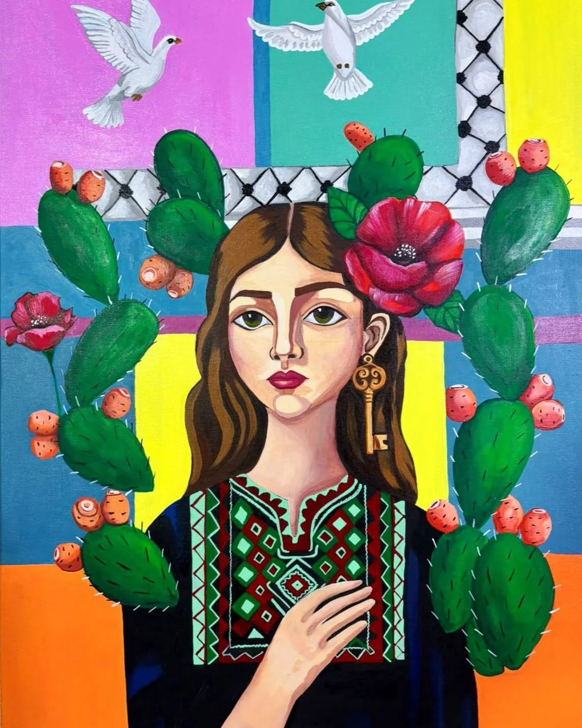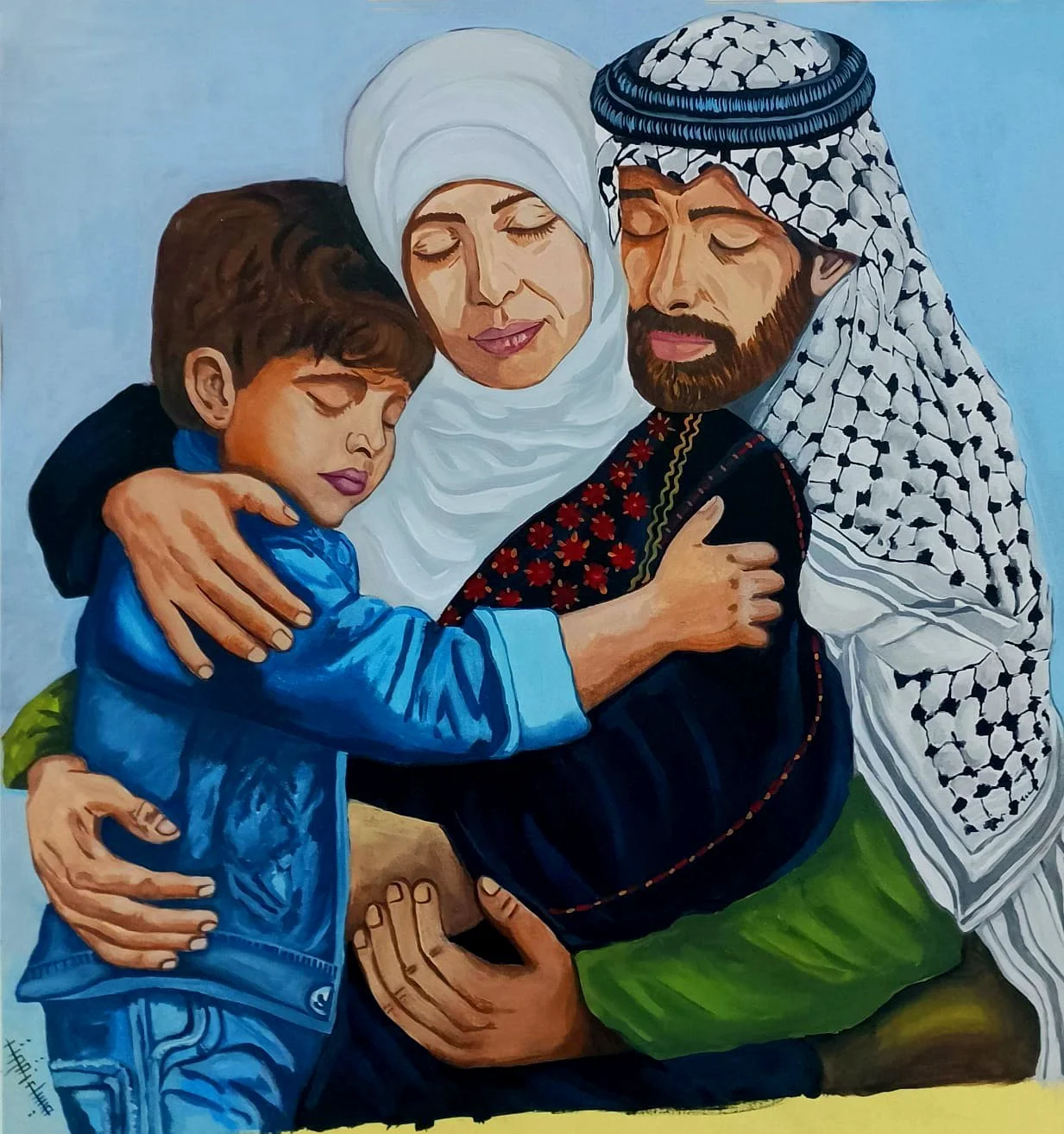 Maysaa Ghazi is a 47-year-old artist, mother, and educator. Her sister, Heba Zagout, was martyred by an IOF airstrike at the beginning of the genocide on October 13, 2023, along with two of her children. Throughout the genocide, Maysaa has tried to survive with her own children as she continued to make artwork.