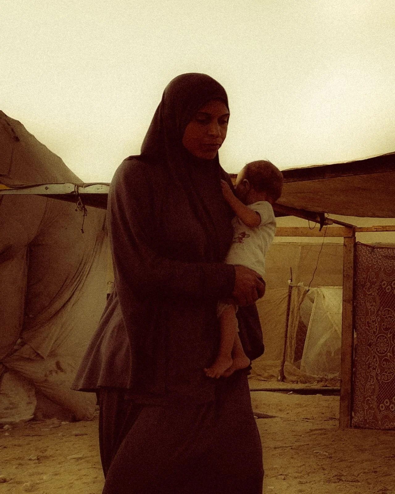 With the genocide, his family of six has been displaced and working to survive. On his Instagram, Moayed has been sharing quiet moments from his fellow refugees who are living out of tents.