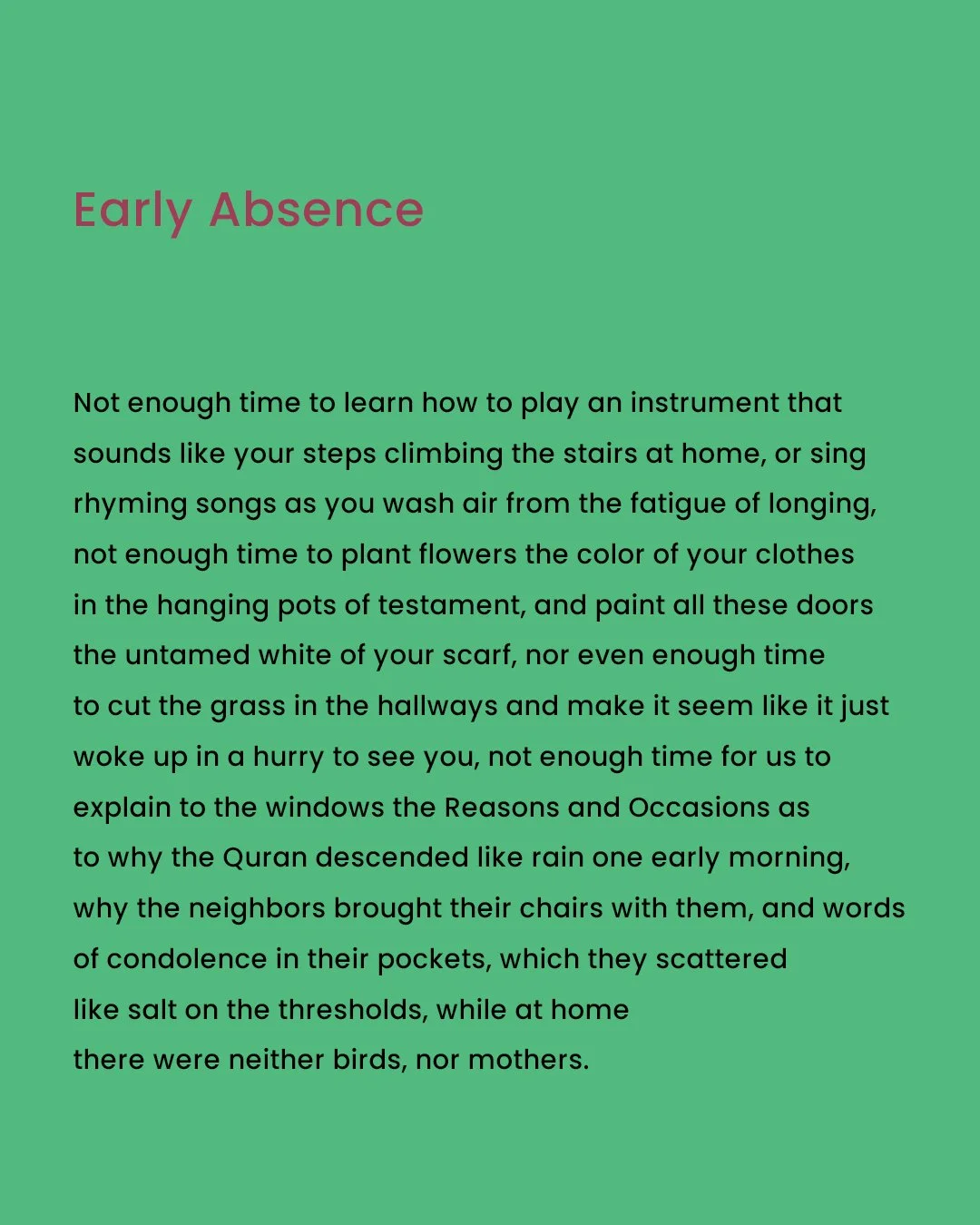 “In a time of war, what I write is not poetry—rather, I merely describe what I see and feel without need for significant literary intervention. What has taken place so far defies the imagination and surpasses metaphor; it is, in and of itself, poetry that aches.
