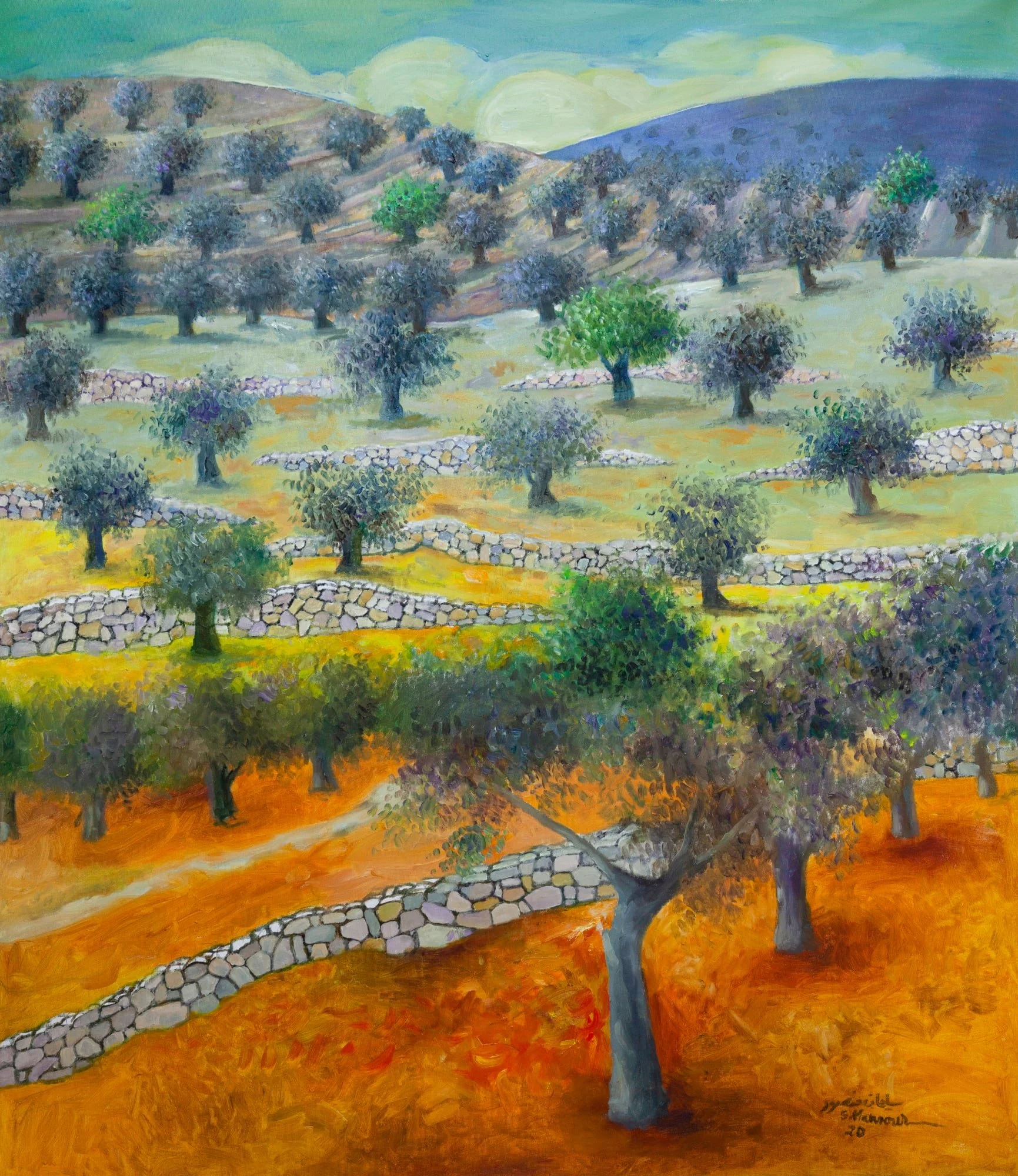 Another kind of tree has also played a role: "When I paint orange trees I am painting land that was occupied in 1948, and when I paint olive trees, I am painting about land that was occupied in 1967.”