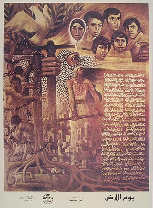 Another poster Mansour did in 1976 was for the first ever Land Day where Palestinians protested the confiscation of 5,000 acres of land and six unarmed civilians were martyred.