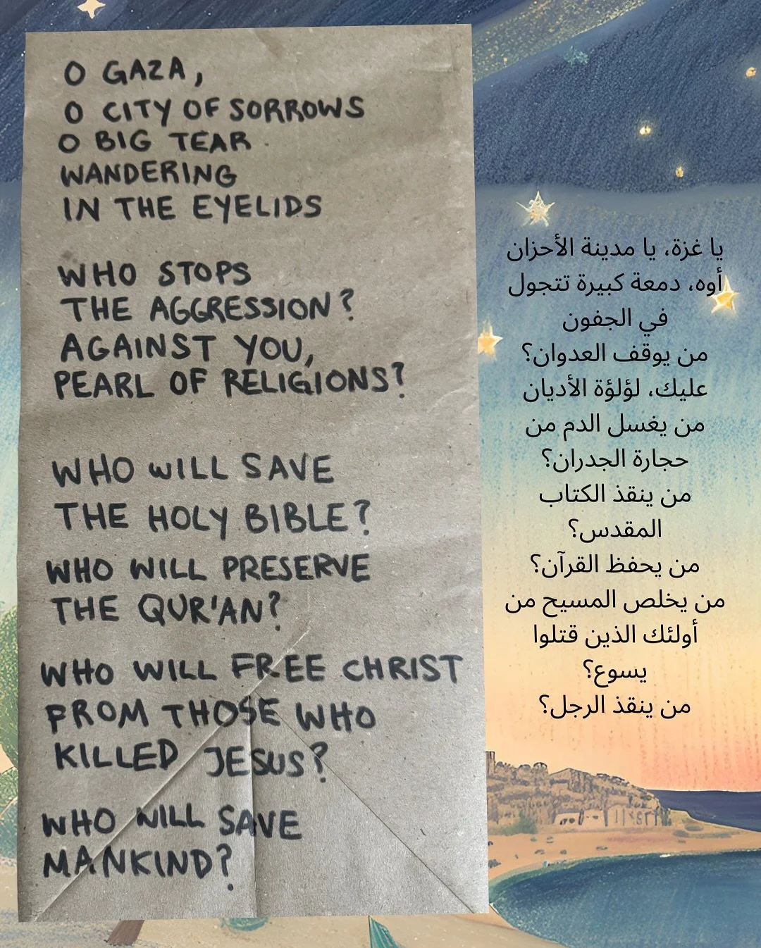 His first chapbook of poems, A Beautiful Day in my Imagination, written during the ongoing genocide, is available for sale to support his campaign and family.